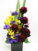 (写真のアレンジは、今回馬木也さんへお贈りしたお花です。シックな色使いのお正月バージョンです)